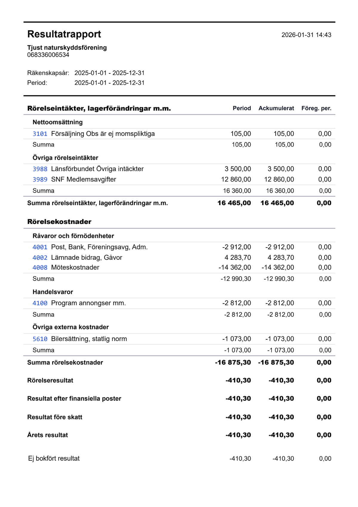 Ekonomisk rapport för verksamhetsåret 2025